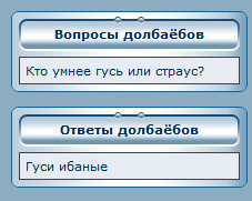 Однако мы решили замутить такую фишку.Собрали вопросы долбаёбов и ответы долбаёбов.Теперь на главной странице можно увидеть ебанутый вопрос и тут же ответ к нему и заебись получаеца. У мя вот как совпало бля